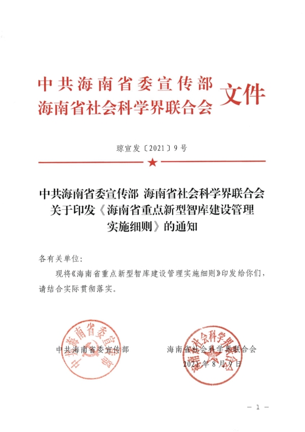 中共海南省委宣传部 海南省社会科学界联合会关于印发《海南省重点新型智库建设管理实施细则》的通知