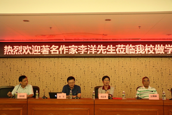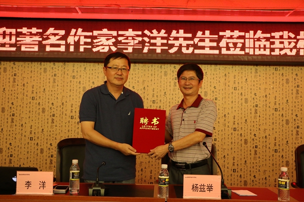 钟书记首先向我们简单介绍了本次讲座的主讲人李洋先生及其策划监制的著名影视作品。随后,杨副董事长发表致辞,并表示为了让师生们日后能有更多机会聆听李洋先生的报告,公司决定聘请李洋先生为客座教授,并当场为他颁发聘书。