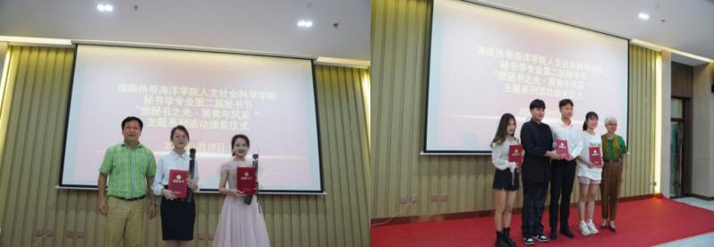 比赛结束后,林尤利老师对情景剧及达人秀两项比赛进行了点评。他充分肯定此次活动取得的成效,对同学们出色的表演予以赞扬。他指出,团体和个人各展风貌,无不展现出秘书学学子多才多艺、热情活力的风貌。点评结束后,各位老师为在朗诵、情景剧和达人秀比赛中获奖的同学颁奖,并与获奖同学合影留念。