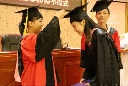 毕业典礼在雄伟庄严的国歌声中拉开帷幕。工作人员宣读优秀毕业生、优秀毕业论文人员名单。钟有桩书记、郑力乔副经理分别为毕业生颁发学位证书,拨穗正冠。导师们与毕业生一一握手,并合影留念。