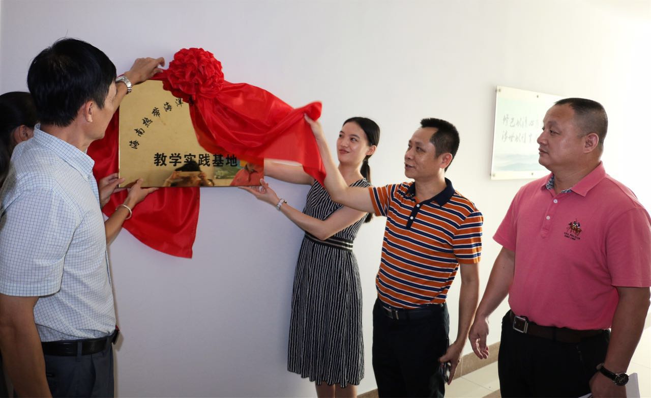 钟有桩书记与天涯区人民政府宣传部部长梁定会共同为教学实践基地揭牌。
