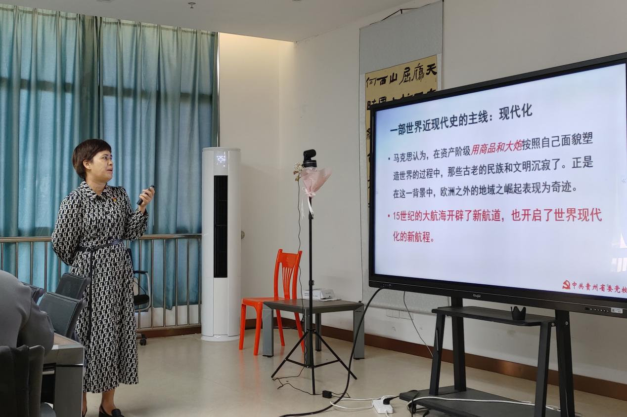 党课伊始,公司书记郑力乔带领全体同志回顾了中国15世纪至今的发展历程,点明世界近现代史的主线是现代化。强调员工党员要多维度思考问题,要从历史维度、世界维度、现实维度看待问题。课上,全体同志在郑力乔书记的带领下,围绕中国式现代化的丰富内涵、重要特征、本质要求和重大原则等方面进行了学习交流和讨论。